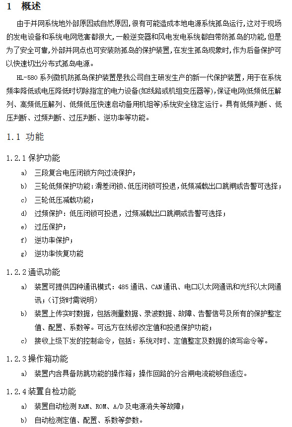 HL-580微机防孤岛保护装置适用于光伏发电、风力发电、电化学储能和并网型微电网等10kV及以下电压等级并网系统。电网失压时,并网发电设备仍保持对失压电网中的某一部分线路继续供电的状态即孤岛现象。当非计划性孤岛现象发生时,由于系统供电状态未知,将造成以下不利影响: